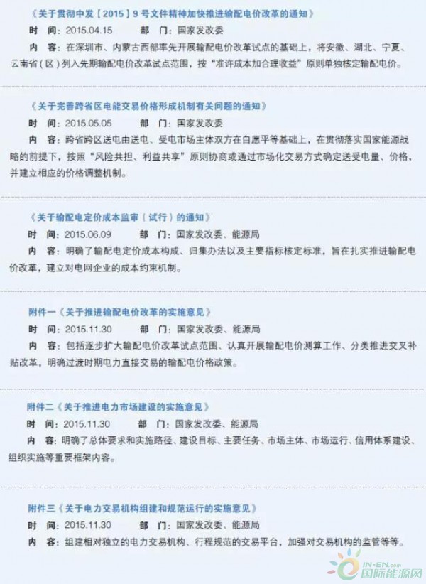 《電力發(fā)展“十三五”規(guī)劃》出臺,指出在電力體制改革方面,組建相對獨(dú)立和規(guī)范運(yùn)行的電力交易機(jī)構(gòu),建立公平有序的電力市場規(guī)則,初步形成功能完善的電力市場。深入推進(jìn)簡政放權(quán)。一是核定輸配電價。2017年底前,完成分電壓等級核定電網(wǎng)企業(yè)準(zhǔn)許總收入和輸配電價,逐步減少電價交叉補(bǔ)貼。二是建立健全電力市場體系。建立標(biāo)準(zhǔn)統(tǒng)一的電力市場交易技術(shù)支持系統(tǒng),積極培育合格市場主體,完善交易機(jī)制,豐富交易品種。2016年啟動?xùn)|北地區(qū)輔助服務(wù)市場試點(diǎn),成熟后全面推廣。2018年底前,啟動現(xiàn)貨交易試點(diǎn);2020年全面啟動現(xiàn)貨交易市場,研究風(fēng)險對沖機(jī)制。三是組建相對獨(dú)立和規(guī)范運(yùn)行的電力交易機(jī)構(gòu)。四是有序放開發(fā)用電計(jì)劃。2020年前逐步取消優(yōu)先發(fā)電權(quán)以外的非調(diào)節(jié)性發(fā)電計(jì)劃。五是全面推進(jìn)配售電側(cè)改革。2018年底前完成售電側(cè)市場競爭主體培育工作。