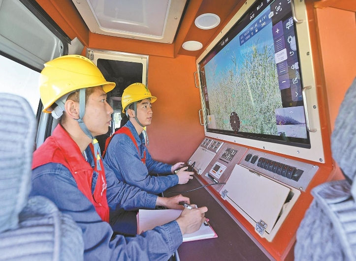 圖② 供電員工在指揮車內(nèi)遠程操控無人機。