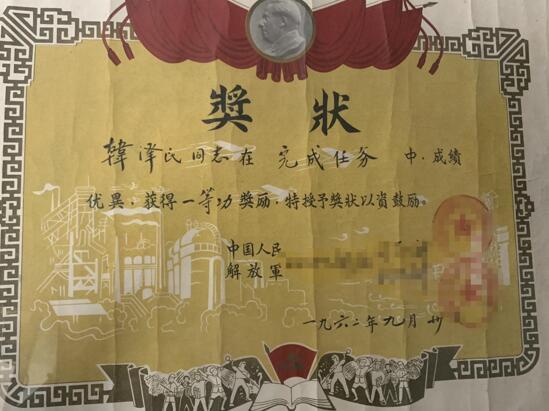 1978年,韓澤民結束了22年的軍旅生涯轉業(yè)。此后,他在電力系統(tǒng)默默無聞41年,嚴格遵守相關規(guī)定和部隊紀律,刻意塵封功績,為人低調,從未向組織提過任何要求,也未要過任何待遇。直到今年八一建軍節(jié)前夕,大名縣電力部門對退休職工中有過參軍經歷的老人上門統(tǒng)計普查時,在確認符合相關規(guī)定、不會泄密后,韓澤民才打開那口塵封多年的老式大皮箱,把深藏的“一等功”和“提前晉級晉銜”獎狀,拿出來示人,大家才知道他有這么輝煌的過往。