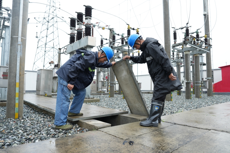 國家電網(wǎng)遼寧電力(沈陽)雷鋒共產(chǎn)黨員服務(wù)隊隊員在強(qiáng)降雨過后,特巡大東區(qū)10千伏意沈線臨河開閉站。