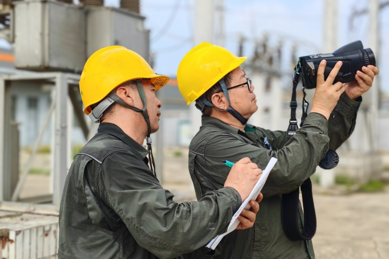 國網(wǎng)河北邢臺供電公司員工在35千伏華龍站進(jìn)行巡檢測溫。