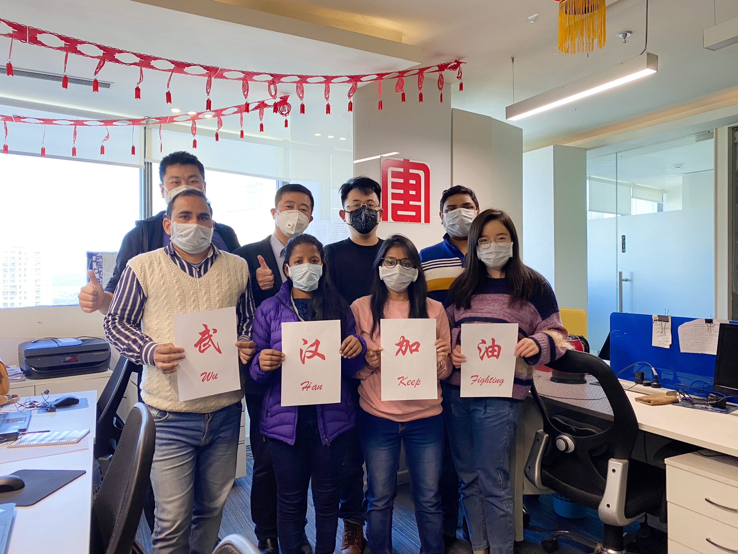 大唐科技工程印度公司職工共同為武漢加油。(郝俊嘉/攝)