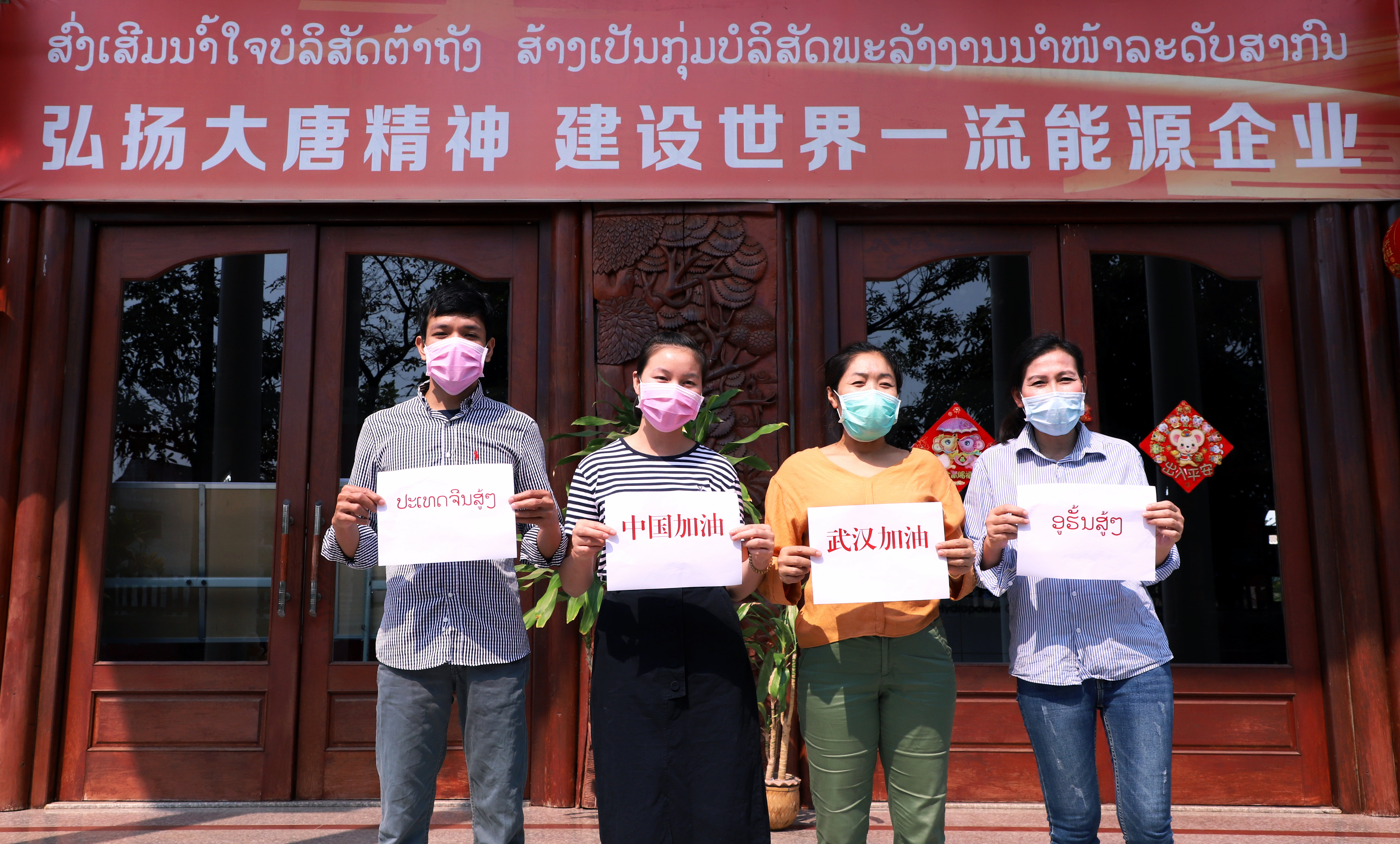 大唐老撾北本薩拉康公司老籍職工為武漢加油,為中國加油!(劉強(qiáng)/攝)