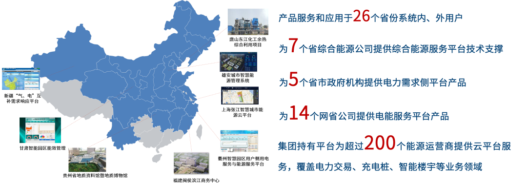 目前,相關(guān)產(chǎn)品及解決方案已在26個(gè)省市全面開花,獲得4項(xiàng)省部級(jí)獎(jiǎng)勵(lì),成功打造了雄安新區(qū)市民服務(wù)中心智慧能源管控系統(tǒng)、上海張江科學(xué)城智慧城市能源云平臺(tái)、天津城市能源互聯(lián)網(wǎng)平臺(tái)、國家電網(wǎng)公司南北客服中心綜合能源工程、青島智能家居產(chǎn)業(yè)園綜合能源服務(wù)、新疆“氣、電”互補(bǔ)需求響應(yīng)平臺(tái)、云南能投充電服務(wù)平臺(tái)等多項(xiàng)優(yōu)質(zhì)項(xiàng)目。