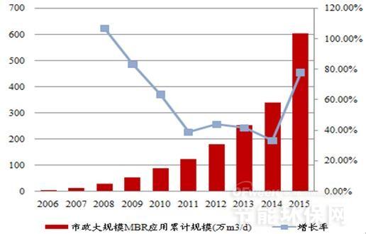 市政大規(guī)模MBR應用和膜法市政水廠規(guī)模變化與膜法水處理行業(yè)產(chǎn)值變化趨勢高度一致