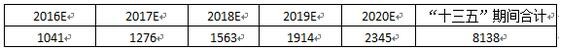 在2006至2011年的規(guī)?;こ虘秒A段,行業(yè)產(chǎn)值復合年均增速為21%,在2011年至2015年的全面推廣階段這一數(shù)值達到30%。目前雖然我國城鎮(zhèn)污水處理率已達90%,污水處理產(chǎn)能增長空間有限,但考慮到存量處理能力改造,再生水回用和工業(yè)廢水處理的潛在市場空間,以及排放指標進一步收嚴,民眾對于選擇先進環(huán)保技術的心理傾向等因素,“十三五”期間膜法水處理行業(yè)產(chǎn)值年均增速大概率落在20%-25%。取中位數(shù)22.5%進行計算,到2020年行業(yè)產(chǎn)值達到約2345億,整個“十三五”膜法水處理產(chǎn)值可達8138億元。